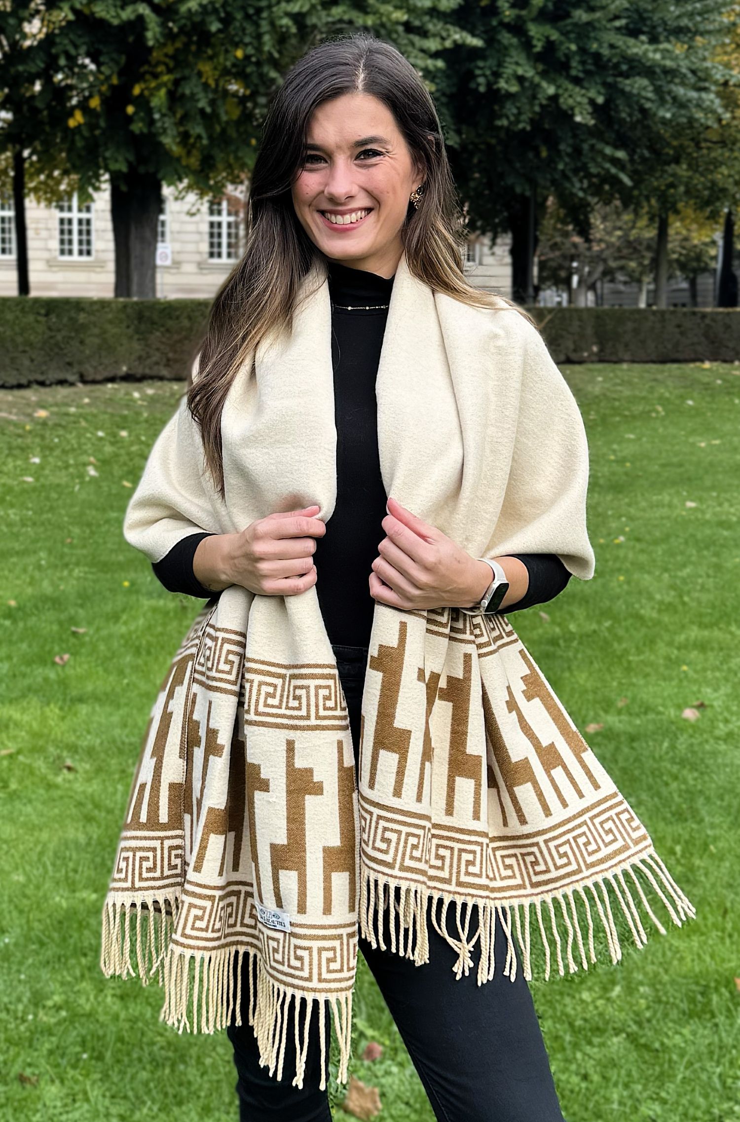 Beige Polar Cotton Shawl – The Warmth of Andean Heritage – Andean Essence Collection