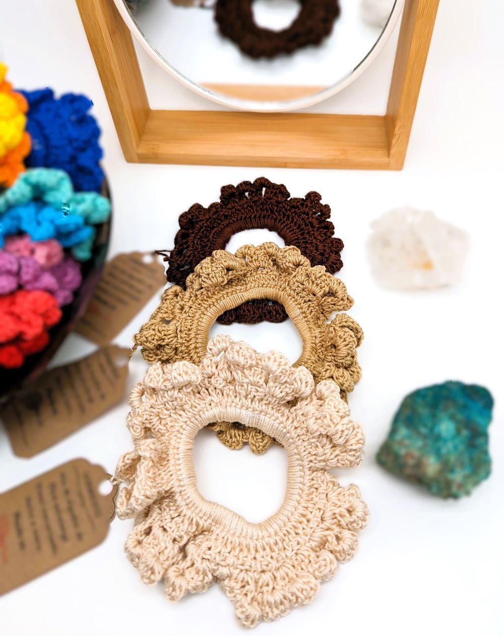Each scrunchie is meticulously hand-knitted by skilled artisans in Peru, ensuring quality craftsmanship and attention to detail.
