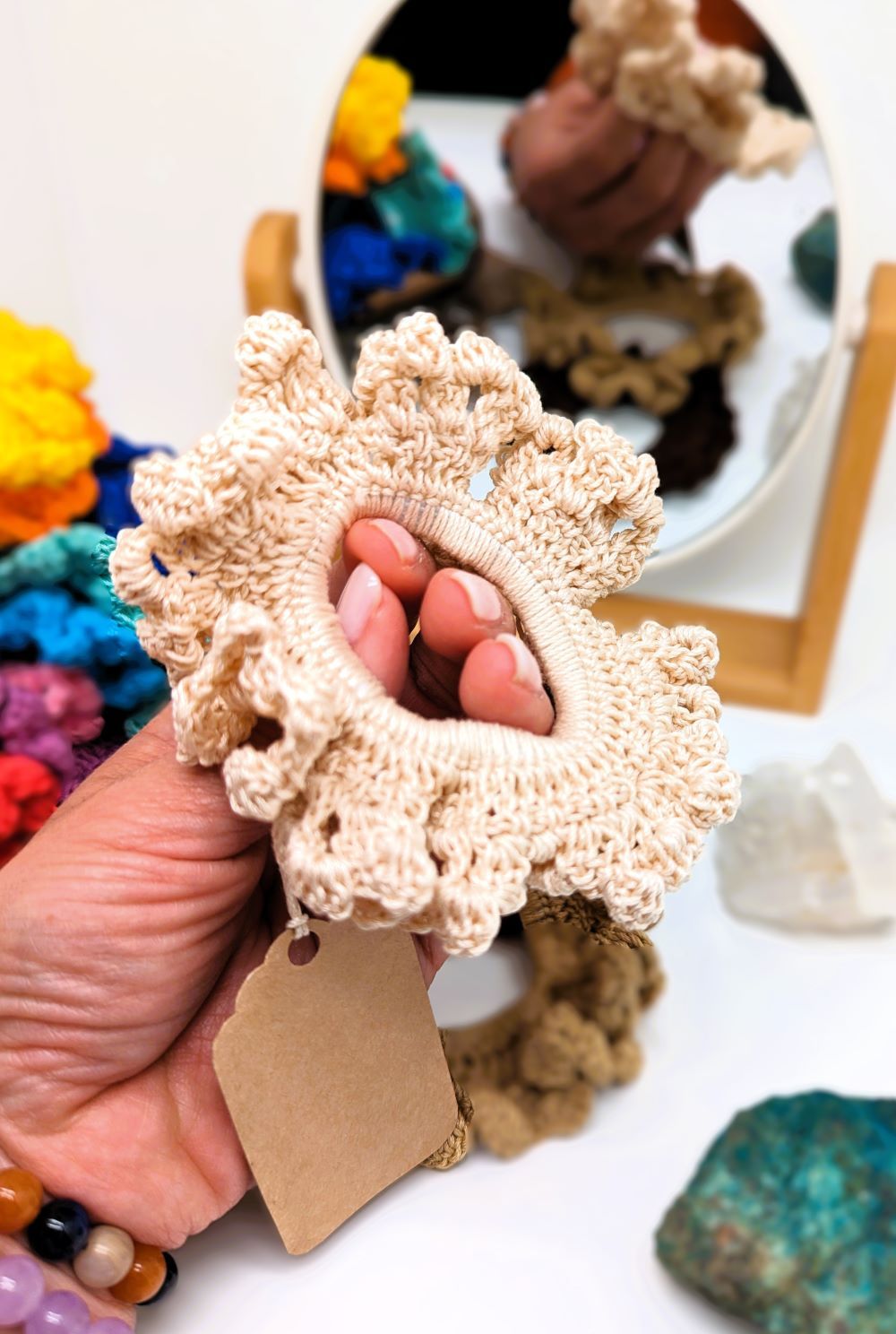 Elevate your hair accessory game with our Hand-Knitted Peruvian Cotton Scrunchie. Crafted with care from 100% Peruvian cotton fiber, this scrunchie offers a blend of style, comfort, and sustainability.