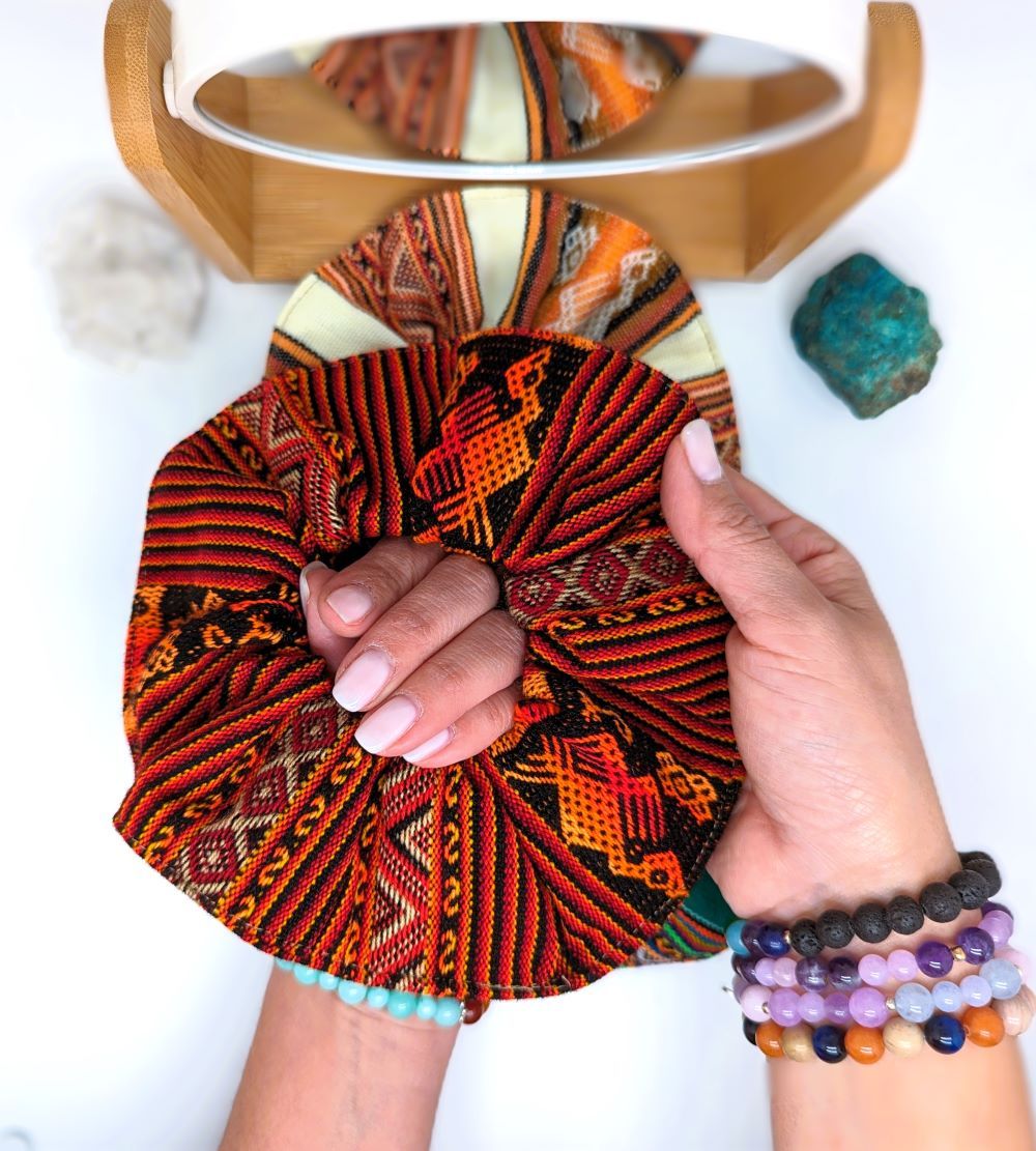 Whether you’re dressing up for a festival or adding a pop of color to your everyday look, these Peruvian Fabric Hair Scrunchies are versatile and stylish.