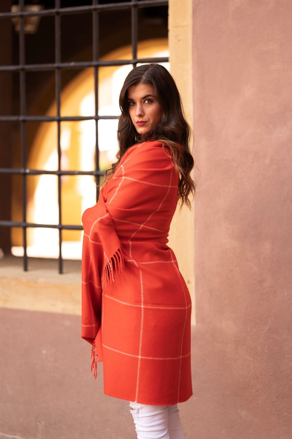 Luxurious Checkered Baby-Alpaca Throws | Peruvian Baby-Alpaca blanket- Vibrant Coral-Red