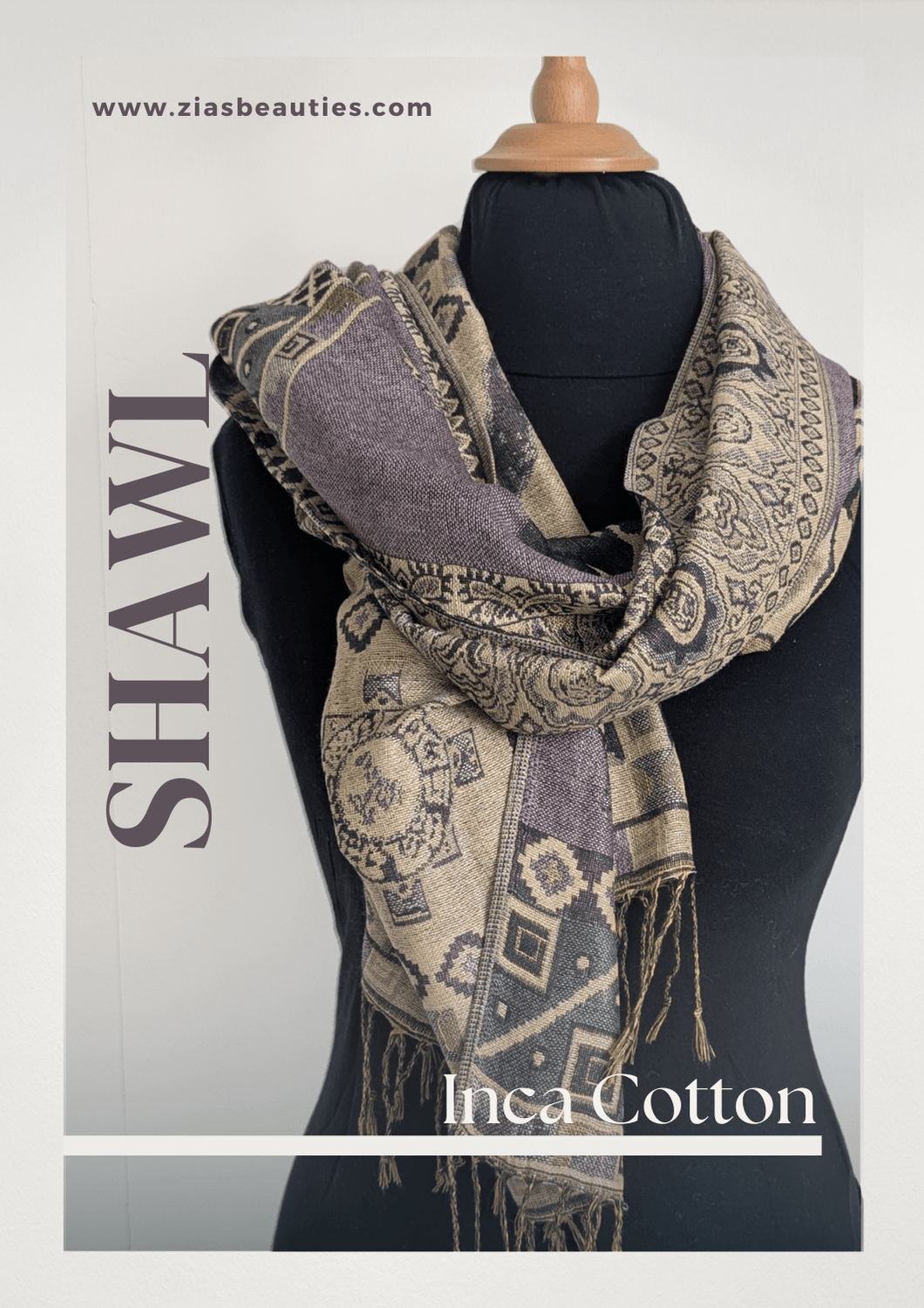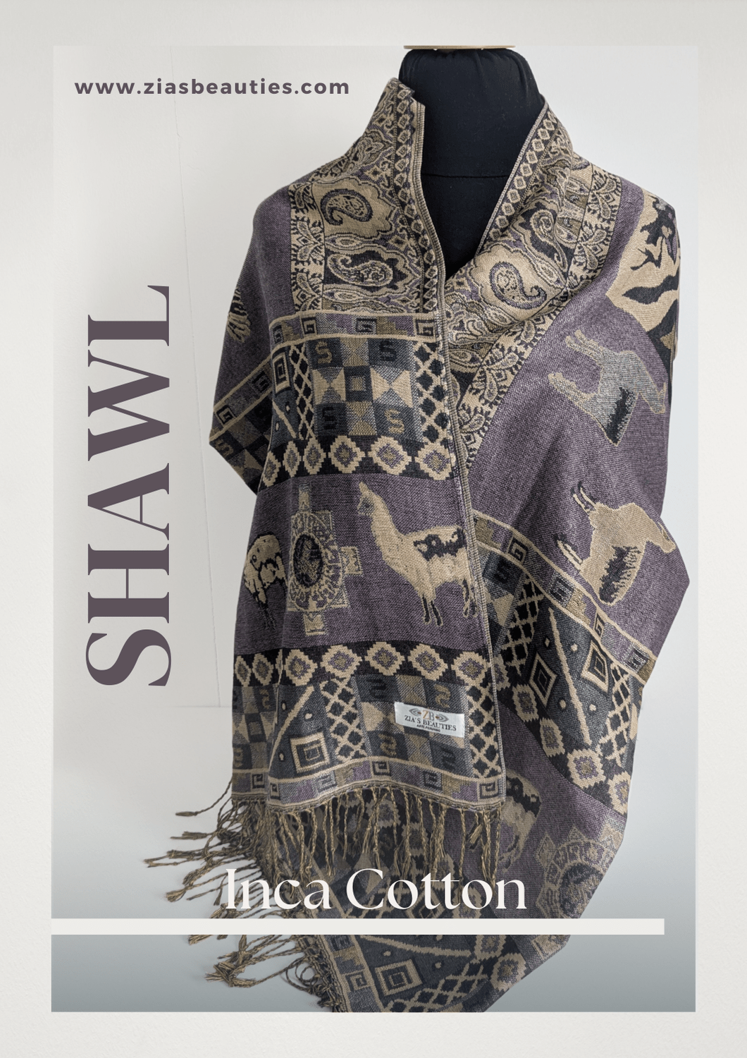 This 100% Peruvian cotton shawl is meticulously woven on a traditional wooden loom by skilled artisans, ensuring an authentic and high-quality textile. Featuring intricate Andean and Inca geometric patterns, this reversible shawl offers versatility and sophistication, adapting seamlessly to both winter and summer wear.