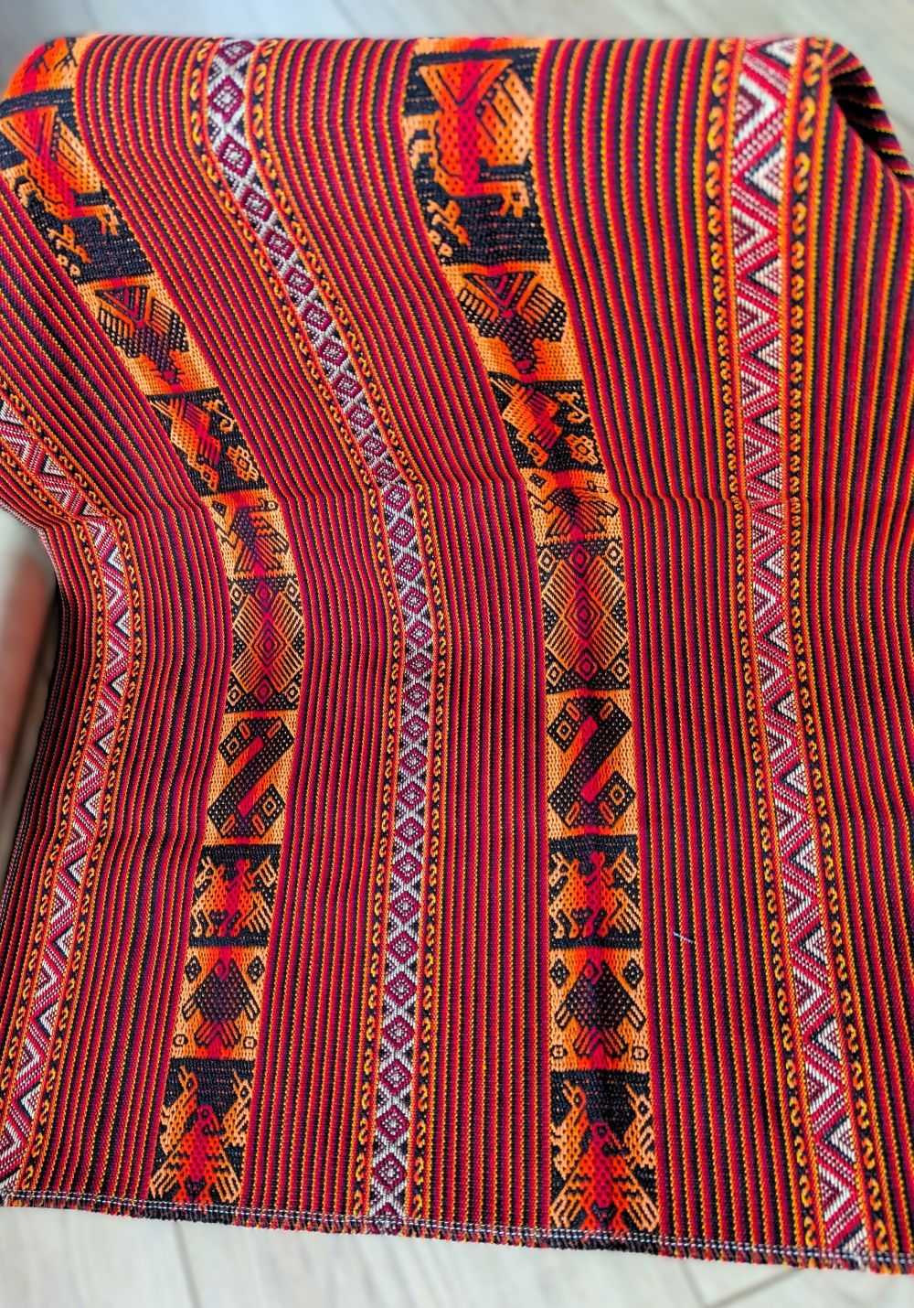 Every meter of this vibrant textile is handwoven by Peruvian artisans, using ancestral techniques that celebrate the warmth and passion of the Andes. ❤️