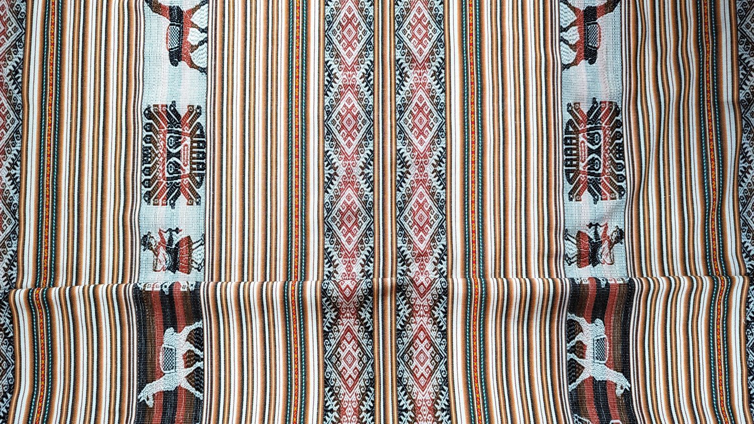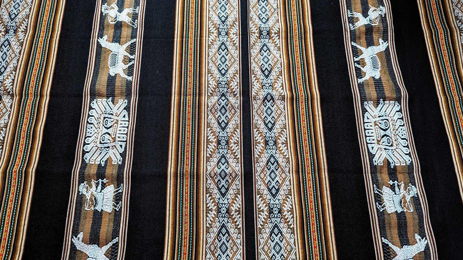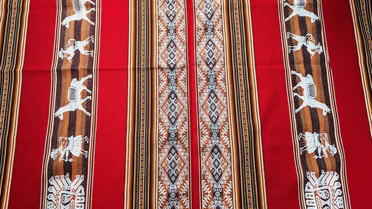 Handwoven with precision and soul by Andean artisans, this traditional Inca-style fabric celebrates the rich legacy of the Andes. The designs feature llamas, the sacred Inca Sun, Cholitas and Cholitos in traditional dress, and geometric motifs from the Inca and Pre-Inca cultures — all coming together in a vibrant symphony of heritage and texture.