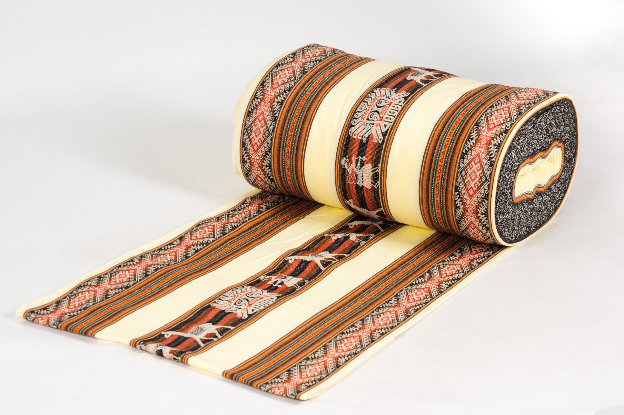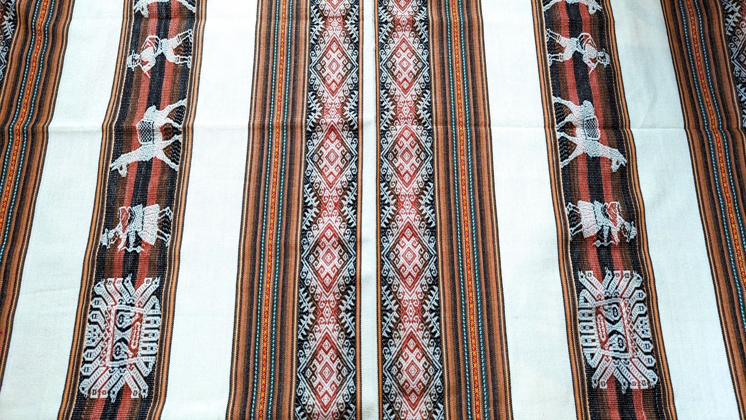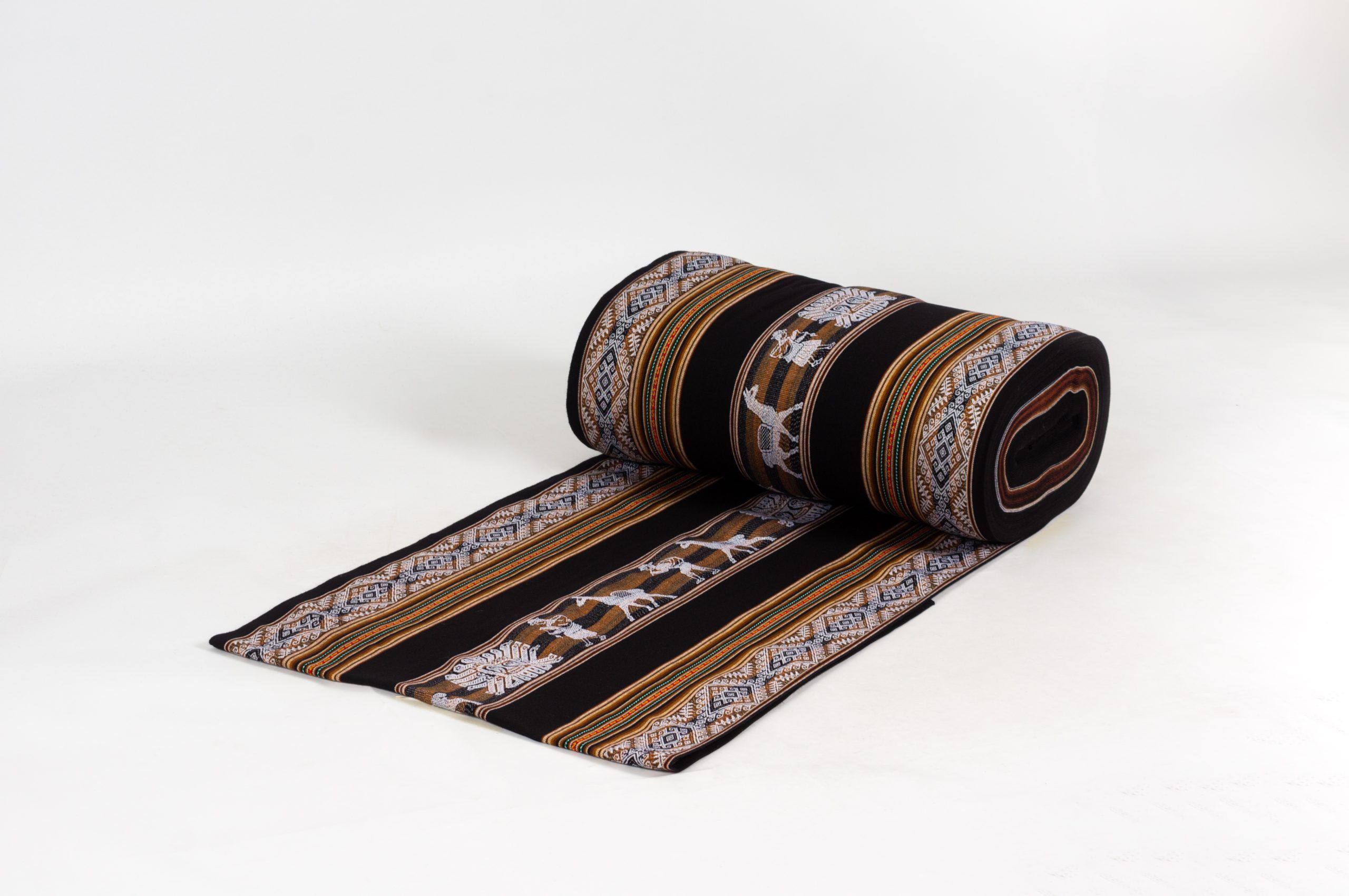 Handwoven with precision and soul by Andean artisans, this traditional Inca-style fabric celebrates the rich legacy of the Andes. The designs feature llamas, the sacred Inca Sun, Cholitas and Cholitos in traditional dress, and geometric motifs from the Inca and Pre-Inca cultures — all coming together in a vibrant symphony of heritage and texture.