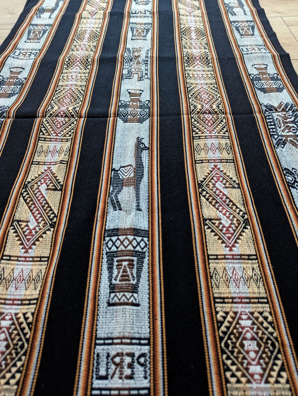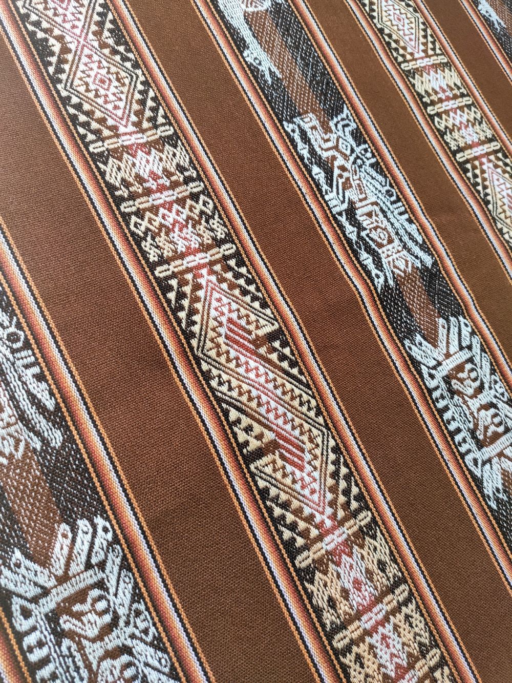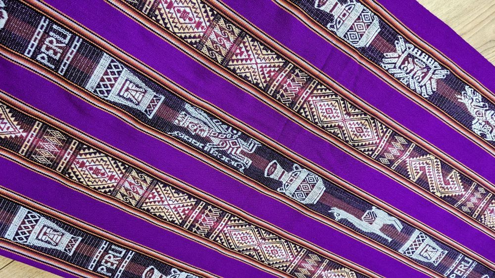 Discover our Peruvian Andean Fabric “LLAMAS & Q’EROS”. This colorful striped “Aguayo” fabric is sold by the meter, allowing you to choose the quantity you need for your creative projects.