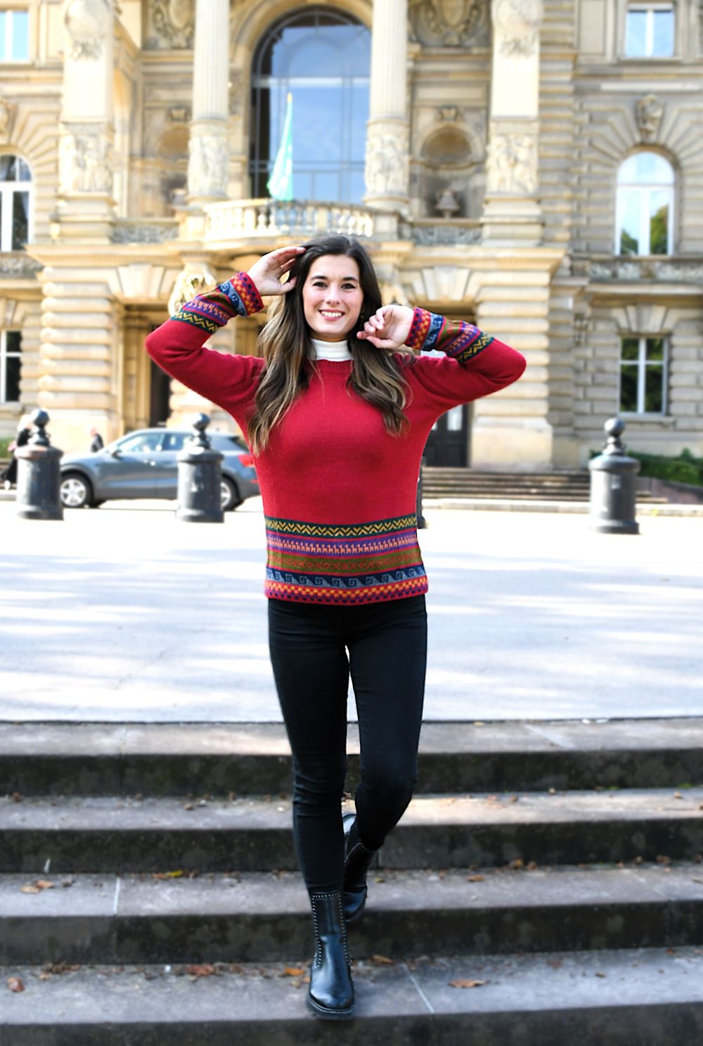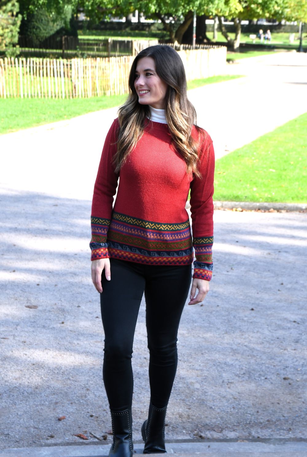 Bold and captivating, this pullover celebrates the vibrant spirit of Andean artistry.