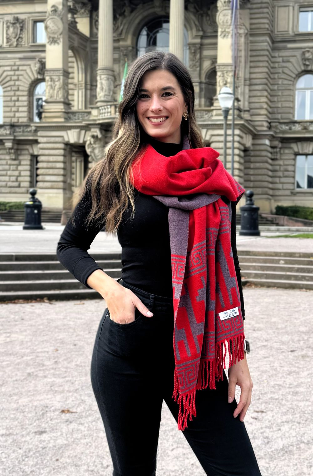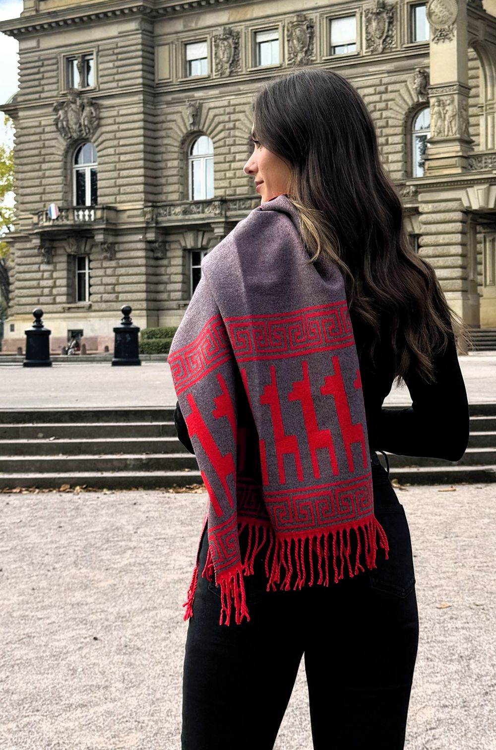 Feel the pulse of the Andes with this Red & Mauve Grey Polar Cotton Shawl, a symbol of warmth, vitality, and timeless elegance. Its rich tones and soft texture make it an essential piece for those who carry both fire and calm in their spirit.